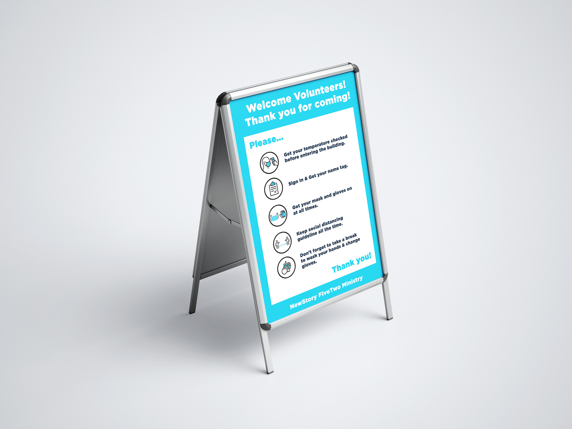 As COVID-19 has been affecting the world, NewStory Church LA opened up their church on the weekends to help the community of LA who are in need of food, toilet paper, diapers, wipes, and etc. These signages were created to help the volunteers to remember some of the COVID-19 protocols.